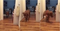 Pitbull anda em "bicos de pés" com medo de acordar o terrível gato lá de casa