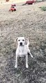 Un chien fait de la balançoire