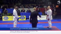 Championnats de France de Karaté Combats Seniors 2014 <br />Samedi 12 avril / Clermont-Ferrand <br /> <br />Finale Hommes +84kg : Mickael Chantalou - Salim Bendiab <br /> <br />Réalisation : Pierre-Yves Dick - FFKDA