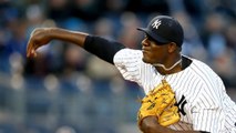 New York Yankees manager Joe Girardi hails pitcher Michael Panedi after victory over the Chicago Cubs brought their first doubleheader shutout for 27 years.