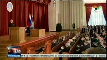 Soldados estadounidenses en Polonia. Otra imagen más de una crisis que no se desactiva: la ucraniana. Una compañía de la 173 Brigada Aerotransportada llegó ayer a Swidwin para participar en unas maniobras conjuntas junto al Ejército polaco. Entretanto, Moscú y Washington continúan con su guerra verbal. Serguei Lavrov subía ayer el tono y advertía a Kiev:<br /><br />Serguei Lavrov, Ministro de Exteriores ruso:<br /><br />“ Si nos atacan, responderemos. Si nuestros intereses, nuestros intereses legítimos, los intereses de los rusos son atacados directamente, como ocurrió por ejemplo en Osetia del Sur, no veo otra salida posible que responder de acuerdo a las leyes internacionales. Atacar a los rusos es atacar a Rusia”<br /><br />El ministro de Exteriores ruso también acusó a Estados Unidos de estar detrás de lo que ocurre en Ucrania y de teledirigir a las autoridades de Kiev. El departamento de Estado califica esas declaraciones de “ridículas”:<br /><br />Jennifer Psaki, portavoz del departamento de Estado:<br /><br />“ Muchas de las acusaciones que ha hecho en esa entrevista son ridículas y no se apoyan con hechos constatables sobre el terreno. Las acciones del Gobierno ucraniano son una respuesta legítima de las autoridades a la toma por medios armados de edificios en algunas ciudades del este de Ucrania”<br /><br />La operación militar reanudada por Kiev en la parte oriental del país, precisamente, obtuvo ayer sus primeros frutos con la recuperación de una pequeña localidad, Svyatohirsk, situada de manera estratégica entre Donetsk, Járkov y Lugansk. Según el ministerio del Interior ucraniano, la misión no ha dejado ni provocado víctimas.