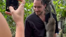 Tourist turns into jungle gym for monkeys during visit to Ubud Monkey Forest