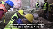Maroilles, le 30 avril 2014. Les ouvriers affectés à la réfection de l'Arc de triomphe de Maroilles emploient des matériaux et des techniques anciennes.
