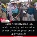 Heated fight between a lady and a drunk guy on the road in Jhansi, UP (Drunk youth beaten up by woman). #Jhansi #RoadRage #UPNews