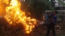 Un cinglé allume son barbecue avec une bouteille de gaz