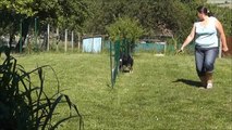 apprentissage du slalom pour Heaven 16 mois; méthode slalom en "V" <br />12 piquets droits sauf les entrées - sorties. Elle se pose encore beaucoup de questions surtout depuis que les piquets sont droits du coup elle ralentie encore pas mal, mais on progresse :)