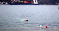 Boğazda farkındalık oluşturmak için yüzerken dev geminin altında kalıyordu