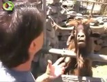 Yanındaki adama tüküren keçi izleyenleri gülmekten kırdı geçirdi