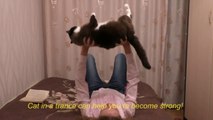 Russian Girl makes her Cat does everything she wants! So funny!