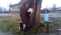 Violent explosion of a Hand made bomb... Dumb guy!