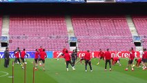 Washington, 3 jun (EFE).- (Imagen: Adrià Calatayud) <br /><br /> <br /><br />La selección española cerró su primer día de trabajo en Washington con un entrenamiento vespertino en el Robert F. Kennedy Memorial Stadium que completó la doble sesión planificada por el seleccionador Vicente del Bosque. <br /><br />El director técnico intensificó el trabajo por la tarde con un entrenamiento exigente de más de una hora de duración que incluyó carga física tras los ejercicios con balón de toque y presión y un circuito que fueron completando los internacionales. <br /><br />Diego Costa y Juanfran Torres protagonizan las noticias positivas para Del Bosque, que probó en el partidillo final en reducidas dimensiones con un equipo titular para el último amistoso, el que España disputa el sábado en el mismo escenario donde se entrenó ante El Salvador. <br /><br />El encuentro disputado a alta intensidad en una tarde calurosa en Washington, dejó un doblete de Diego Costa. <br /><br />Fernando Torres dejó un buen tanto, con amago y definición precisa ante Pepe
