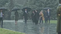 ROUGH CUT (NO REPORTER NARRATION).<br/> <br />STORY: Britain's Queen Elizabeth II ended her three-day official visit to France on Saturday (June 7) by a visit to Paris' flower and bird market.<br/> <br />The Queen and and her husband Prince Philip, Duke of Edinburgh, walked the market's alleys with French President Francois Hollande and Paris' mayor Anne Hidalgo.<br/> <br />The Queen had already visited the market in 1948 and, to celebrate her second visit there, a plaque was unveiled renaming it 'Flower market Queen Elizabeth II'.<br/> <br />The royal couple then headed to Villacoublay airport, accompanied by Hollande.<br/> <br />The Queen's visit to France coincided with the commemoration for the 70th anniversary of D-Day, including a lunch and ceremonies hosted by French President Francois Hollande on Friday.