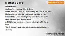 Mother Hurting feelings <br /> <br />I am very Upset my son shut off from me <br />He block me from aim why? ? ? ? ? ? ? ? ? ? ? ? ? <br />I haven't done anything wrong I haven't <br />Seen my son for 5 years I am real jealous <br />My ex husband still see his son why can't I? ? ? ? ? ? ? ? <br />The Bowdidge family did something to change him <br />I always will be his mother and son<br /><br />Rhonda Bowdidge<br /><br />http://www.poemhunter.com/poem/mother-s-hurting-feelings/