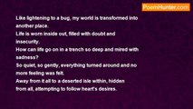 Softened clouds of dismay are arranged <br />periodically in systems of disarray. <br />Lasting thoughts coalesce and brew many <br />new ideas of imagination. <br />All of them taking me into tunnels of <br />reminiscence and being remembered in times <br />of creative sadness as it caresses our hearts in <br />sorrow, holding us in deepest sympathy with our souls.<br /><br />RoseAnn V. Shawiak<br /><br />http://www.poemhunter.com/poem/deepest-sympathy-2/