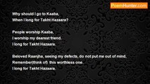 The hajjis go to Mecca. <br />My beloved Ranjha is my Mecca. <br />Yes, I am crazy! <br /> <br />I am wedded to Ranjha. <br />Still my father pushes me. <br />Yes, I am crazy! <br /> <br />The hajjis go to Mecca <br />My bridegroom, within me, is my Mecca. <br />Yes, I am crazy! <br /> <br />Hajjis and ghazis both lie within us, <br />Thieves and pickpockets too. <br />Yes, I am crazy! <br /> <br />The Hajjis go to Mecca <br />But I am going to Takht Hazara. <br />Yes, I am crazy! <br /> <br />Wherever is your beloved, there lies Kaaba, <br />Though you search the four books. <br />Yes, I am crazy!<br /><br />Bulleh Shah<br /><br />http://www.poemhunter.com/poem/the-hajjis-go-to-mecca/