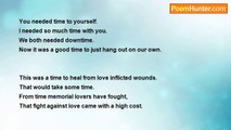 The rainforest's green, <br />It's lion's growly roar, <br />And it's screeching parrots. <br />It drank some acid rain today. <br /> <br /> <br />The rainforest' green today, <br />Tattered and torn. <br />Acid rain wore out this forest. <br />It's canopy terrifically worn. <br /> <br /> <br />The environmentalists frowned. <br />People all around cried in loud sounds. <br />But the green universal protest, <br />Made no difference. <br /> <br /> <br />It saved no canopy. <br />It didn't save the lion, <br />And the parrot screeched louder. <br /> <br /> <br />Even though the green forest said no.<br /><br />Vera Sidhwa<br /><br />http://www.poemhunter.com/poem/no-said-the-rainforest/