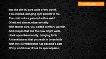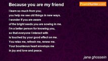When i cry, you help me out <br />When i am happy, you hear me shout <br />when i am sad, you dry my tears <br />when i am scared, you help me beat my fear <br />when i am lost, you light my way <br />thank you for being my best friend <br />i shall never forget what have you done <br />untill my very end<br /><br />jana ghossein<br /><br />http://www.poemhunter.com/poem/best-friend-90/