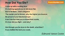 You may labor your fill, friend of mine, if you will; <br />You may worry a bit, if you must; <br />You may treat your affairs as a series of cares, <br />You may live on a scrap and a crust; <br />But when the day's done, put it out of your head; <br />Don't take your troubles to bed. <br /> <br />You may batter your way through the thick of the fray, <br />You may sweat, you may swear, you may grunt; <br />You may be a jack-fool if you must, but this rule <br />Should ever be kept at the front: -- <br />Don't fight with your pillow, but lay down your head <br />And kick every worriment out of the bed. <br /> <br />That friend or that foe (which he is, I don't know), <br />Whose name we have spoken as Death, <br />Hovers close to your side, while you run or you ride, <br />And he envies the warmth of your breath; <br />But he turns him away, with a shake of his head, <br />When he finds that you don't take your troubles to bed.<br /><br />Edmund Vance Cooke<br /><br />http://www.poemhunter.com/poem/don-t-take-your-troubles-to-bed/