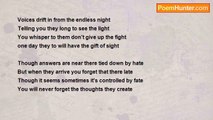 I found myself looking into the sky <br />Watching the moon float by <br />Waiting for the sun to hit my eye <br />And for the birds to begin to fly <br />And for their song to pierce my ear <br />And while the moment is getting near <br />I feel like I’ve been waiting for a year <br />All of a sudden these sounds I hear<br /><br />Liam Hughes<br /><br />http://www.poemhunter.com/poem/moon-watching-2/