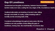 Undertakings of jubilant love break out on open waters <br />of the sea. <br />Thrashing and floating at intervals of day and night, <br />culminating in warm hugs and thoughtful words. <br />Loving brought to the forefront of elderly aims, as <br />they are steeped nightly in aging loneliness forever. <br />Moments of glory found in daylight hours are held <br />closely in beds of remembrance, alone in bed. <br />Morrows have a way of keeping a hold on life for <br />sacred times, etching them in memories of one. <br />Keepsakes of moments together hold life in place for <br />those who are sorrowful.<br /><br />RoseAnn V. Shawiak<br /><br />http://www.poemhunter.com/poem/aging-loneliness/