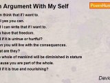 Surrounded on every side by nature's infinite forms, <br />each leaf sways in the wind and speaks of its seed. <br />Underfoot in a thin layer of fertility, insects busy in darkness <br />and as we shake off thin veils of the dross of ages past; <br />you come crashing through a forest of dreams, <br />blinding my sight with star beams and reduce to ash <br />my beggars bag of treasures that bowed my sight to dust. <br /> <br />The universe sings a song to just one auditorium <br />and dances in praise of all that's come and gone. <br />Your smile quietly illuminates the scene <br />as the curtains fall on this dreamer's dream. <br />And now an empty stage is filled with actors <br />as they display the greatness of your play <br />and I melts into the purest knowledge <br />which those actors can never touch or say.<br /><br />David Taylor<br /><br />http://www.poemhunter.com/poem/an-empty-stage/