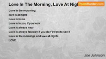 This night is just right <br />This night seems like it was meant for us <br />This night is something special <br />This night is just right<br /><br />Joe Johnson<br /><br />http://www.poemhunter.com/poem/this-night-is-jsut-right/
