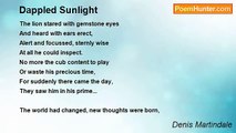 The cheeky cheetah cubs looked calm, <br />Until they heard a sound... <br />Then they looked up, alert to harm, <br />For dangers to be found. <br />The world was not a friendly place <br />Where everything went well. <br />The cubs stared straight, this truth to face <br />And nought could break the spell. <br />Transfixed like statues borne of stone, <br />As cold as marble now... <br />They searched for new clues, all alone, <br />So they'd survive somehow. <br />Like cuddly kittens, side-by-side, <br />Their battles must be picked. <br />Sometimes to fight, sometimes to hide, <br />Or maybe they'd been tricked... <br />Breathe easy, lads, the coast is clear... <br />No need to wear a frown. <br />You scaredy-cats! No need to fear - <br />You're safe, so settle down... <br />Their trembling whiskers twitched away! <br />Their tails swished to and fro! <br />Then one long sigh as if to say, <br />'Well, how were we to know? ' <br />One day must come when they'll stand tall, <br />Full grown as adult males, <br />So everyone can hear them call <br />As they explore new trails. <br />They'll run like shooting stars above - <br />Two brothers, siblings still... <br />United in their lifelong love, <br />With every hunting skill... <br />Their common destiny awaits - <br />Who knows if they'll be blessed? <br />We only know that God creates... <br />Yet each must do his best... <br /> <br /> <br />The poem is based on the magnificent painting <br />by Stephen Gayford called 'Siblings'.<br /><br />Denis Martindale<br /><br />http://www.poemhunter.com/poem/siblings-8/