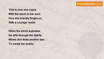 Words strung together on waves of the soul <br />Pitching and tossing ideas till they're whole <br />Heartbreak and hardship, romance and fate <br />Somebody out there somewhere can relate <br /> <br />A starlet, a mother, a wealthy mans wife <br />A teen filled with angst that is lost in this life <br />Can perhaps read those words and make them their own <br />And know in this world we are never alone <br /> <br />They can find in the message a glimmer of light <br />Something that maybe they've actually done right <br />When all hope is lost we can find in a poem <br />That somebody else is there waiting at home <br /> <br />It just doesn't matter who we are, what we've done <br />Getting lost in a poem, we can all become one <br />The form's not important if the message is true <br />These are the things that a poem should do <br /> <br />© S.E.S<br /><br />Sara Stowell<br /><br />http://www.poemhunter.com/poem/poem-36/