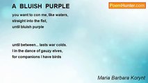 behind the third ocean it was miraculously <br />the life alone passed without pushing <br />making the bed gravel footpaths with white shadow <br />of box trees in length cut <br />on their background colour umbrella <br />it decorated grass green <br />flirting with blue of water like the painted flower <br />with bizarre colours gathered <br /> <br />from the rainbow ribbon stuck in my hair <br />your eyes as ever carefully expected <br />gathering clouds on my forehead <br />in order in time to save it what delicate <br />before the approaching storm <br />you weren't only able in them to stop lightnings <br />and me when I came back up to own wings <br />it was behind the third ocean better <br /> <br />now I am here where your music of words <br />for me is still heard even though surges <br />are carrying fleeting dreams more slowly <br />I feel the familiar smell <br />when a gentle puff of wind <br />is caressing my body <br />my world is one great ocean <br />I am not having to search more <br /> <br />a lot of of them these are departures <br />partings and retutrnings <br />how I will name it when you stay there far <br />and I won't manage to exceed <br />the fourth ocean <br />don't only forget to trim the lawn <br />and heart whether will withstand <br />when a half stays...<br /><br />Maria Barbara Korynt<br /><br />http://www.poemhunter.com/poem/close-goodbyes/