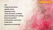 I pretend I’m in love with you <br />I need someone <br />I’m crazy reckless when I’m alone <br />when I’m talking to your eyes <br />I pretend like they care, <br />are interested <br />and when I hold you I pretend <br />your not cold <br />when I wake up <br />I make a banana smoothie <br />and throw my heart in the blender <br />before I get back in bed with you <br />and I pretend <br />you think it tastes good<br /><br />Jon Edward Walker<br /><br />http://www.poemhunter.com/poem/pathetic-pretense/
