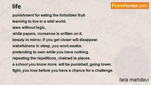 give your hand, help me to stand up <br />although my back is bent <br />yes it is me crawling on the ground <br />i'm no longer the brave fighter <br />i'm just a hopeless watcher <br />i don't believe in love anymore <br /> the love people made for themselves <br />the murmurs coming out of their needs <br />it cant shake me inside <br />making me the one i searched to be. <br />learn me to talk, breake my silent <br />i wont say nonsence any more. <br />learn me the alphabet of love <br />i write it on my soul, <br />where is completly vacant, <br />where i hope once to see the blooming <br />tell me the secret of my being <br />the miracle which brings sense to me <br />then i die easily<br /><br />tara mahdavi<br /><br />http://www.poemhunter.com/poem/what-is-love-133/