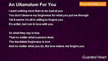 Anything in text or word <br />Will hide itself in conversation <br />Anything wrong in your world <br />Will get you if it can <br />Anything that makes you hurt <br />Will kill you on the spot <br />Anything within your heart <br />Will hide within the corners <br />Anything that goes right <br />Will scare you into doubt <br />Anything you give up <br />Will never truly come out <br /> <br />And if you hide from what you want <br />Then it is you that anything shall haunt<br /><br />Guarded Heart<br /><br />http://www.poemhunter.com/poem/anything-7/