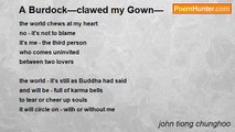 morning glories by the sidewalk <br />each bloom oozes with my love <br />in the mist, full of the beauty of youth <br />can you hear the stirring of a smitten heart? <br />each flower's trumpet that helps play <br />my love song to the heaven and you <br />- take it now or tomorrow it will be gone <br /> - gently as it has come, the fashion of those <br />transient violet gowns<br /><br />john tiong chunghoo<br /><br />http://www.poemhunter.com/poem/transient-gowns/