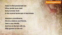 I’m traveling nowhere <br />In a dream, <br />Vague towns <br />And ghost retreats, <br />Stumbling into mist <br />In the valley of discontent. <br /> <br />I’ve been stranded in the past <br />Living in a lonely room <br />Gazing through dirty windows <br />Into the sunless world. <br /> <br />Conversations repeat like broadcasts <br />In my brain, <br />Something she said <br />Echoes in the corridors <br />Of sorrow. <br /> <br />I scratched a note <br />On a piece of paper <br />And buried it <br />In a book <br />I never gave her. <br /> <br />Time gradually <br />Wears away at tenderness, <br />Insensitivity remains. <br /> <br />There is always <br />A thousand things <br />I meant to do and say, <br />Gifts that met trash canisters <br />Instead of human hands. <br /> <br />Can I find that book? <br />Do I have the courage <br />To read that note? <br /> <br />Did she ever conceive <br />That I loved her? <br />Will I ever rediscover the man <br />That vanished in an ancient kiss?<br /><br />Uriah Hamilton<br /><br />http://www.poemhunter.com/poem/ancient-kiss/