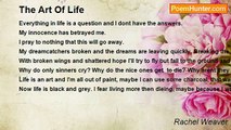 Dear World, <br /> You really never had the chance to know me <br />You never will get the chance <br />Because these words they are the last <br /> <br />I never asked to be here <br />In fact I dont recall asking anything <br />But maybe I was more humble than I'll ever be <br /> <br />I suppose I could try and say that I loved my life <br />But you wouldnt believe that if you saw the knives <br /> <br />Maybe I'll tell you a story about when I was a little child <br />But oh god its been awhile <br /> <br />I might be able to get my point across if I do this simple thing <br />I could pick up this gun and leave the boom for you to hear ring<br /><br />Rachel Weaver<br /><br />http://www.poemhunter.com/poem/dear-world-2/