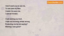 There is a mask over my face to block out the world <br />to keep all that may cause harm away <br />I am scared to be hurt <br />I have been hurt in the past <br />It made me stronger <br />but not strong enough <br />To block out my emotions <br />from prying eyes <br />they think im strong but it is only a mask <br />I dont want them to see if they broke me <br />my emotions will stay hidden for a wile <br />till im brave enough to show them again<br /><br />Tara Jones<br /><br />http://www.poemhunter.com/poem/mask-24/