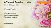 Haiku by Charles Garcia <br />Rain Drops <br /> <br /> <br />Crystaline raindrops <br />A vision to our naked eye <br />A moment of reverence <br /> <br />Sunday, April 24,2005<br /><br />Charles Garcia<br /><br />http://www.poemhunter.com/poem/rain-drops-haiku/