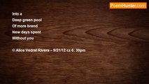 Black chunks <br />amid white streams <br />all shades of gray <br />splashes of red <br />of hot pink <br />dotted with <br />uneven drops <br />of blue <br /> <br />Pieces <br />spots <br />of my life <br />of my soul <br />broken - spilled <br />on the pavement <br />for all to see <br /> <br /> <br /> <br />1996<br /><br />Alice Vedral Rivera<br /><br />http://www.poemhunter.com/poem/fragments-7/