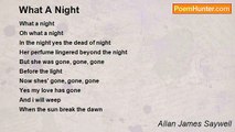 They lay me to rest with flower's sweet bouquet <br />A lovely marble slab, with the words-- <br />Sorry Mommy, for not looking left and right <br />But Mommy dearest, it was the dead of night <br />Birds fly in and sit on top of me <br />They stay awhile then deffecate all over me <br />Being dead ain't what it's cracked up to be <br />Dog's come and visit, cock there leg and then <br />I have there DNA for eternity <br />Oh woe is me, oh woe is me <br /> <br />Written Wednesday March 2006<br /><br />allan James saywell<br /><br />http://www.poemhunter.com/poem/dog-day-night/