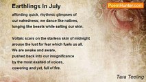 Fast go, fast show, <br />with a motor-horse hum <br />and a savage cat roar, <br />the world is a <br />serpentine swerve. <br /> <br />Muffled music with <br />thumping, bumping bass <br />fools the listener with its <br />accidental genius. <br /> <br />Turn it up loud, bigger <br />than the rush of <br />highway wind, so <br />that freedom fills <br />the seats and hushes <br />the eighteen-wheeler <br />that grumbles to the right. <br /> <br />Red spatters on the pavement <br />turn the head and then the stomach. <br />The eyes focus sharp <br />on broken yellow lines, <br />steering clear of matted fur <br />and mans' vainglorious pursuits. <br /> <br />In every whizzing, left-lane car is <br />a baseball cap or heavy-browed scowl. <br />In the right lane is white hair <br />or white knuckles, or both, <br />close to the top of the wheel. <br />There’s no one in the middle. <br /> <br />Near the roadside gravel, <br />past the ditches and the <br />jagged, tattooed asphalt, <br />are the crosses and faded <br />flowers, wearing banged-up <br />names that no one slows to see. <br />The rubberneckers have <br />long since passed the wreckage, <br />forgetting what twisted metal <br />looks like or the scent of spurting <br />fuel. <br /> <br />The seat is somehow numbing, <br />leaving nothing below the waist, <br />and there’s always a ruptured tire <br />by the side of the road. <br /> <br />We pass the defeated traveler, <br />averting our eyes, <br />so he won’t be there. <br />There’s no want for delay <br />or human complications. <br />The thumb of a wayfarer has <br />the makings of a weapon. <br />Be glad that our tires are <br />doughnut plump, and <br />the tank is filled past half. <br />Drive, drive, drive, and <br />skid from the transient hitch! <br /> <br />The mirror reflects nothing <br />but the slight glow of red, <br />and the occasional <br />headlight gleam <br />of others who <br />ride the snake. <br /> <br />A destination <br />is on the horizon, <br />as long as we keep driving.<br /><br />Tara Teeling<br /><br />http://www.poemhunter.com/poem/head-trip/