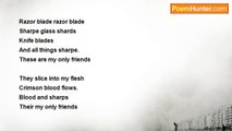 Im a powder cake <br />About to crumble <br />About to go to crums <br />About to blow <br /> <br />Im like a resembelence <br />Of a powder cake <br />Weak and feeble <br /> <br />Im like ice <br />Waiting to melt <br />My feelings frozen. <br /> <br />Im a powder cake <br />aiting to explode <br />Im lonely and trapped <br />Depression rules my life.<br /><br />Amy Kerswell<br /><br />http://www.poemhunter.com/poem/powder-cake/