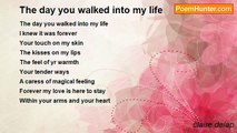 when she walked out of that door <br />i walked into a dream <br /> <br />we held us desperately <br />before any greeting <br />loving this intimately <br />needs no formal meeting <br /> <br />'eternity has passed…' <br />said she in a heavenly way <br />'…since i last saw your face' <br /> <br />was it not more than that? <br />'it was centuries ago, yesterday, <br />that we last did embrace' <br /> <br />touch was thought <br />kiss was speech <br />words mean nothing; <br />stars are in reach <br /> <br />flowers hold no place <br />to the garden of her face <br /> <br />'beloved, do you not…' <br />said she, pushing away <br />'…feel that something is wrong? ' <br /> <br />'my darling, no…' <br />i said in dismay <br />'…i had only begun to hear your song! ' <br /> <br />then she walked past, as if a stranger <br />i had forgotten, i walked into a dream<br /><br />Pete O'H<br /><br />http://www.poemhunter.com/poem/i-walked-into-a-dream/