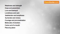 Picking a moisture <br />of pain and hope <br />Relief and burden <br />From the depth <br />From the veins <br />A molten lava <br />A hot breath <br />Fissures out <br />From bneath <br />To ease a burden <br />Relief it heralds <br />Or tones of weight <br />Speaks burden of life <br />Just a sigh... <br />Through the nostrils <br />Through the mouth <br />A hot breath <br />Speaks a lot <br />From bneath <br />Sigh...Uhh...<br /><br />Fasika Ayalew<br /><br />http://www.poemhunter.com/poem/sigh-uhh/