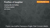 Scarlet <br />Her name reeks <br />of love <br />Her blood is <br />Wine <br />Her sweetness infects every <br />Tree <br />Her mouth is <br />Beauty <br />And every syllable hangs <br />in the <br />Air <br />Like fireflies <br />Bringing light <br />Where there is <br />Dark<br /><br />Roger Pratz<br /><br />http://www.poemhunter.com/poem/fireflies-4/