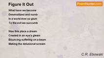 If I could not find a way then I must try to salvage part of my day <br />Thinking, breathing, debating about time and the spaces between <br />When nothing compares with everything and no solution is found <br />Hide and seek, remember and forget the past and present <br /> <br />See you hanging around ducking down behind the corners <br />I never could explain what I’ve seen and don’t believe <br />Failure within success, inspiration of voids in life <br />All the weight falls on me crashing the world of make-believe <br /> <br />If I could sell my soul for a piece of mind <br />Then I could make the wrong seem right even in the night <br />With daylight fading faster and the night lasting longer everyday <br />I still don’t know where I belong, neither here nor there or in between <br /> <br />Life is not what it was before; all these dreams I’ve never seen <br />It seems too far to reach with the mistakes that plaque my existence <br />I’m not ashamed only afraid of exactly who I’ve become today <br />And who it is that will stand before God on judgment day.<br /><br />C.R. Ebowski<br /><br />http://www.poemhunter.com/poem/judgement-day-3/