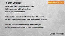 “What I’ve tried to cover up in my life I’m left with” <br />As written in, ”First-John, one through nine.” <br />But no matter how well… I think I’ve hidden my sins <br />They will all be unearthed… with time. <br /> <br />Revealing all the sins we’ve harbored <br />The skeletons hanging secretly… behind closed doors. <br />No matter how well we try and cover them over <br />There always seems… to be added just one sin more. <br /> <br />God suggests we let them lay… out in the open <br />For all too… gaze their eyes upon. <br />And don’t waist your time…trying to bury <br />Those things… mankind is not so fond. <br /> <br />God sees all of what we’ve tried to hide <br />He sees them…and cries out to you. <br />For He came and died… that man should live <br />That was… what He was sent to earth to do. <br /> <br />By: Linda Winchell <br />Copyright: 2009<br /><br />Linda Winchell<br /><br />http://www.poemhunter.com/poem/first-john-one-nine/