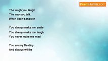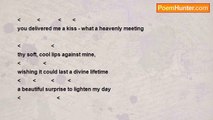 Maybe if I think about what I’ve just done <br />Maybe I’ll see what I did wrong <br />But the more I think <br />The more I like <br /> <br />It doesn’t help <br />It doesn’t work <br />Because that little kiss <br />That was shared between our lips <br /> <br />Will always be in my head <br />The thoughts that faded <br />While you were there <br /> <br />If I didn’t flirt <br />Maybe this wouldn’t be <br />If I didn’t give in <br />Maybe you would still be my baby<br /><br />Keek Douglas<br /><br />http://www.poemhunter.com/poem/that-little-kiss/