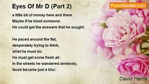 Sometimes our eyes deceive us, <br />seeing thing that are not there. <br />They cloud our mind with illusions <br />of what we want to see. <br />Even our heart can be fooled <br />by love it really wants, <br />and sees love in someone <br />where love shouldn’t be. <br />Broken hearts are littered <br />on the landscape of our eyes, <br />where they have deceived us <br />with a love full of lies. <br /> <br />18 July 2008<br /><br />David Harris<br /><br />http://www.poemhunter.com/poem/eyes-63/