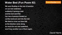 I do believe my wife <br />is falling to pieces in front of me. <br />The other night she sat on the bed. <br />Took out her teeth <br />and plopped them in a glass. <br />Then out came the hearing aid <br />that went into its box. <br />I though if she removes anymore <br />there won’t be a lot <br />to come to bed with me. <br /> <br /> <br />(12 November 2007)<br /><br />David Harris<br /><br />http://www.poemhunter.com/poem/falling-to-pieces-in-front-of-me-fun-poem-43/
