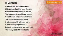 There is woe, there is clamour, in our desolated land, <br />And wailing lamentation from a famine-stricken band; <br />And weeping are the multitudes in sorrow and despair, <br />For the green fields of Munster lying desolate and bare. <br />Woe for Lorc’s ancient kingdom, sunk in slavery and grief; <br />Plundered, ruined, are our gentry, our people, and their Chief; <br /> <br />For the harvest lieth scattered, more worth to us than gold, <br />All the kindly food that nourished both the young and the old. <br />Well I mind me of the cosherings, where princes might dine, <br />And we drank until nightfall the best seven sorts of wine; <br />Yet was ever the Potato our old, familiar dish, <br />And the best of all sauces with the beeves and the fish. <br />But the harp now is silent, no one careth for the sound; <br />No flowers, no sweet honey, and no beauty can be found; <br />Not a bird its music thrilling through the leaves of the wood, <br />Nought but weeping and hands wringing in despair for our food. <br /> <br />And the Heavens, all in darkness, seem lamenting our doom, <br />No brightness in the sunlight, not a ray to pierce the gloom; <br />The cataract comes rushing with a fearful deepened roar, <br />And ocean bursts its boundaries, dashing wildly on the shore. <br />Yet, in misery and want, we have one protecting man, <br />Kindly Barry, of Fitzstephen’s old hospitable clan; <br />By mount and river working deeds of charity and grace: <br />Blessings ever on our champion, best hero of his race! <br />Save us, God! In Thy mercy bend to hear the people’s cry, <br />From the famine-stricken fields, rising bitterly on high; <br />Let the mourning and the clamour cease in Lorc’s ancient land, <br />And shield us in the death-hour by Thy strong, protecting hand!* <br />Lorc, or Lorcan, an ancient King of Munster, the grandfather of the great King Brian Boru.<br /><br />Lady Jane Wilde<br /><br />http://www.poemhunter.com/poem/a-lament-for-the-potato/